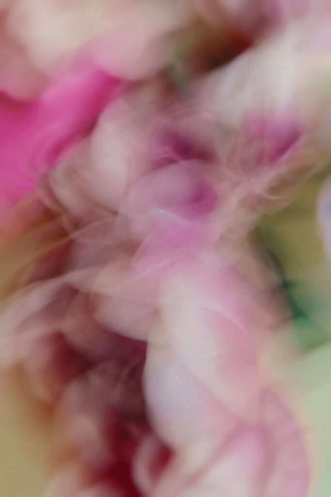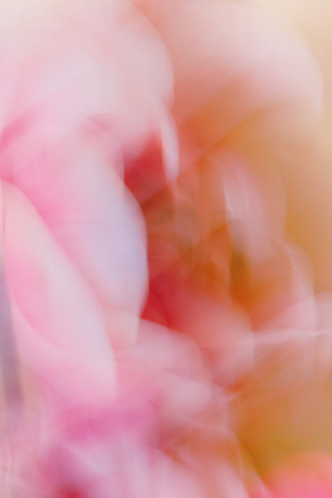 This body of work explores that pulse through abstract, impressionistic studies of salvaged flowers. Rescued at the end of their visible life, the blooms are re-imagined through an intuitive and unconventional process: free lensing, flowers leaning freely, lenses veiled with textures and materials, and at times the petals themselves painted. It is a process that has evolved over many years of practice and exploration. The final stage unfolds in the edit, where colour is carefully pushed toward states that feel deeply meditative. Often working with soft undulating fields of bubble-gum pink, pale yellow and greens and luminous tonal layers that feel almost like pillows of light.