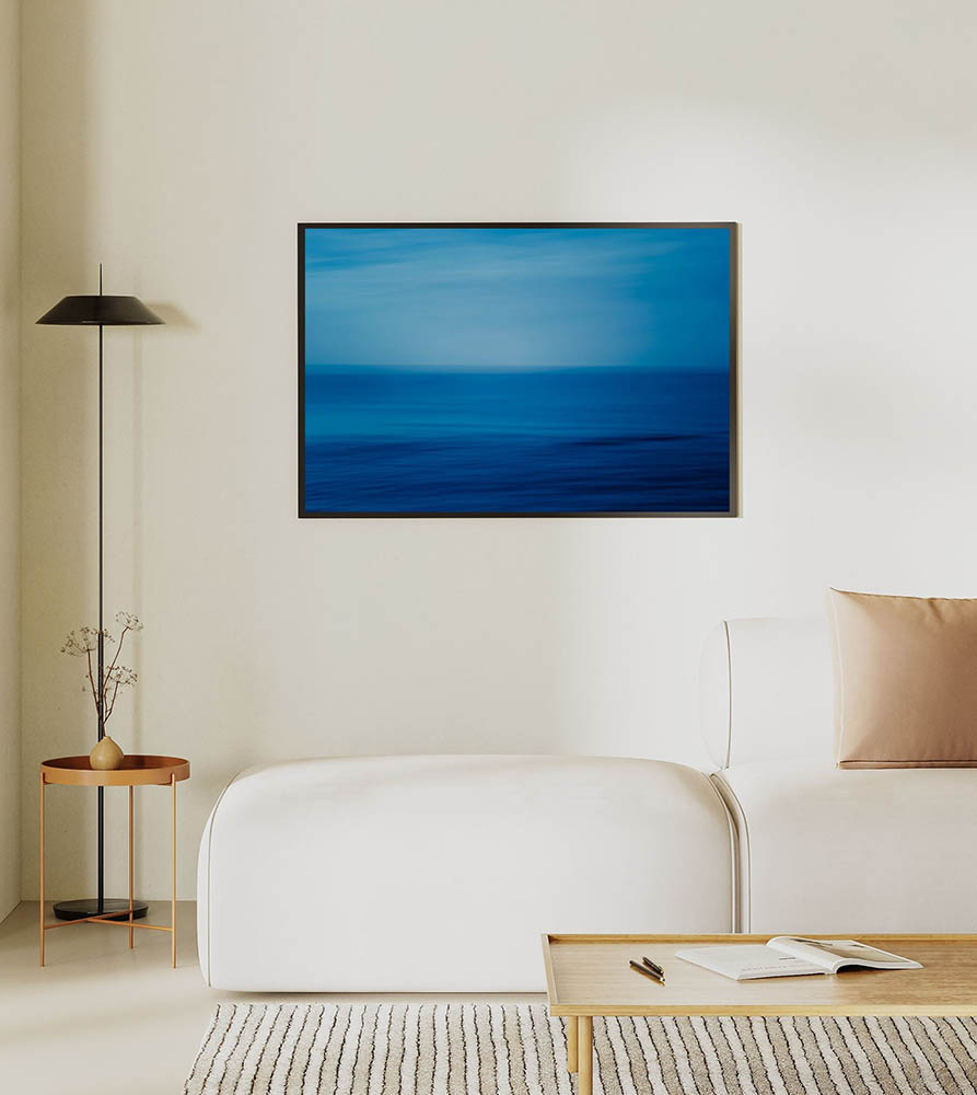 A Day By The Water is from a larger body of work exploring liminal spaces and the thresholds between  fragility, freedom, and transformation. and in this particular image through shifting texture, light and movement finding a mirroring of emotion and a portal to calm.  It’s a large scale abstract seascape that that is immersive and contemplative.
